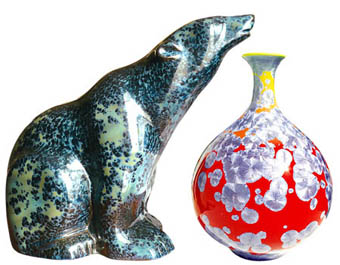 Denis Caraty y explique la technique des cristallisations sur porcelaine, les glaçures à macro-cristaux sur céramiques à base de silicates de zinc, le mécanisme de leur coloration par les oxydes de métaux de transition, les cycles de cuisson et leur influence sur la nucléation et la croissance des cristaux. |