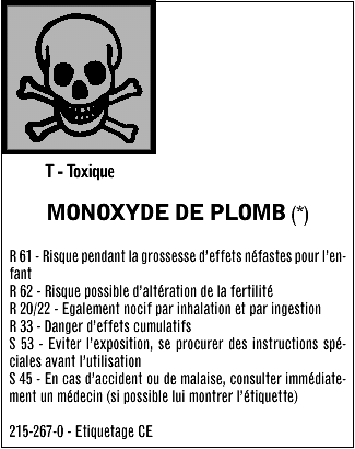 contenant entre 78 et 80% de monoxyde de plomb et le