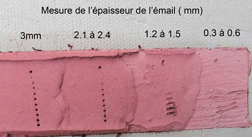 mesurer l'épaisseur d'émail cru sur les