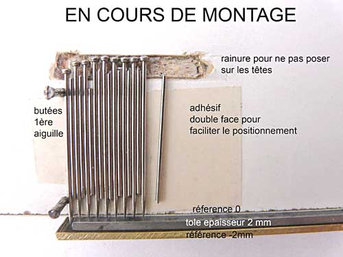 l'alignement des pointes des aiguilles et le plan