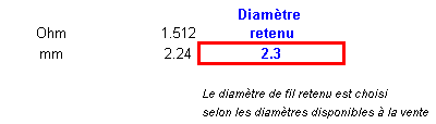 plus proche du fil dont vous disposez, ici 2,3 mm